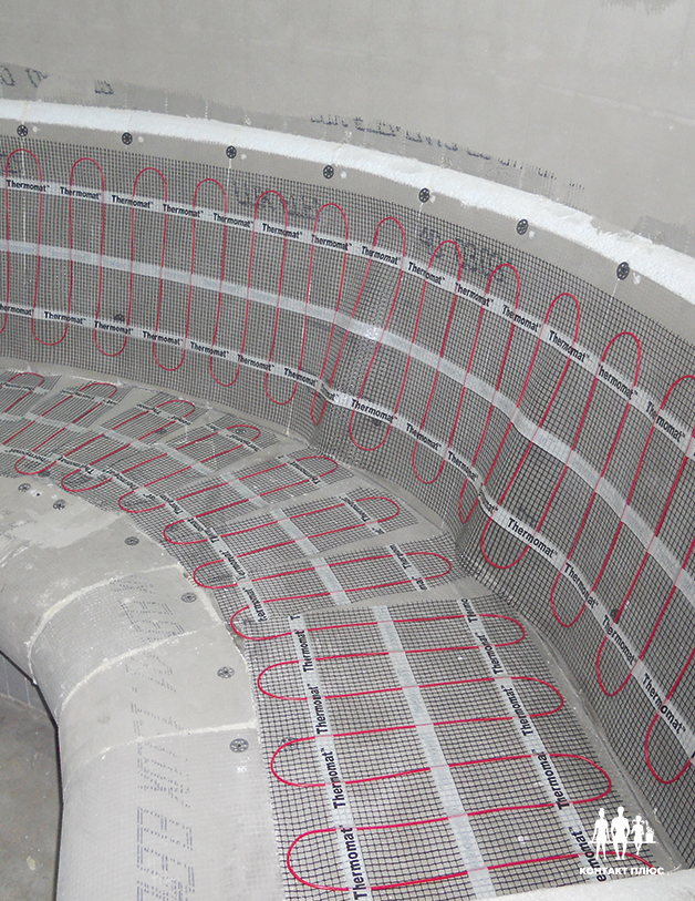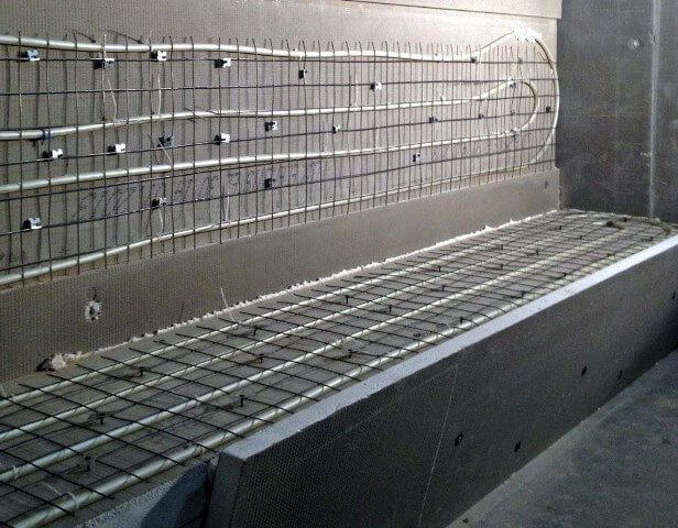 9. В лежаке и стенах делаем прорези под монтаж тёплого пола, теперь лежак и стены будут тёплыми. Это проще и дешевле, чем топить каменные лежаки, плюс сравнив цены на каменный лежак или стол у вас скорее всего появится идея построить еще один хамам на разницу в цене. Тёплый пол подключаем уже к разведённой проводке или если тёплый пол водяной, подключаем трубки к стояку.