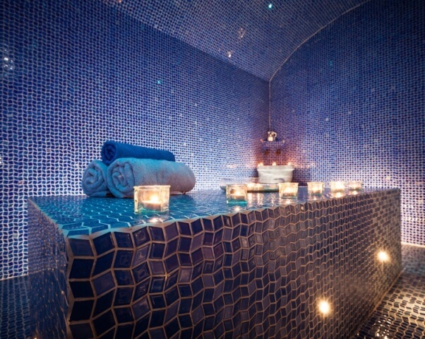 Массажный стол, равно как и лавки для сидения в хамаме обязательно должны обогреваться. Стол для процедур расслабляющего массажа с использованием обильной мыльной пены обычно делают из камня — и никакого дерева в турецкой бане! В классическом, традиционном хамаме массажные столы делают такой величины, чтобы на них могло уместиться от четырех до шести человек. Мы же можем обойтись массажным столом, облицованным мозаикой, на одного человека, высота которого над уровнем пола — 80 сантиметров.